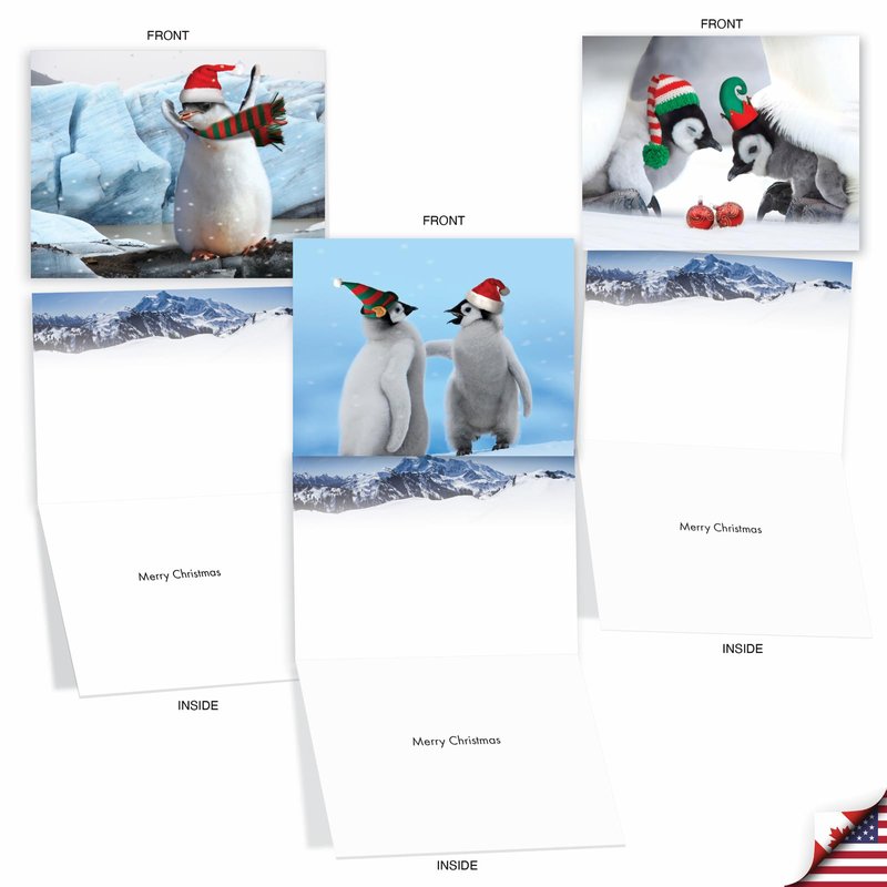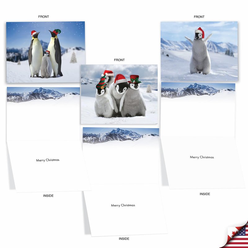 The Best Card Company - 10 Holiday Note Cards for Christmas - Festive Bulk Assortment, Boxed Notecards with Envelopes (4 x 5.12 Inch) - Penguins and Greetings M2951XSG