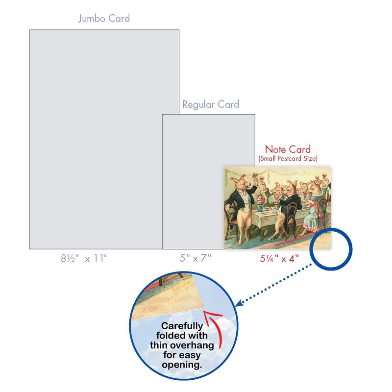 - INSIDE GREETING: "Thank You" COVER - Featuring Vintage Style Pigs Taking Part in Playful Human Adventures