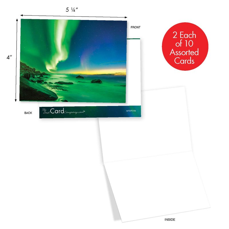 The Best Card Company - 20 Landscape Nature Note Cards Blank (4 x 5.12 Inch) (10 Designs, 2 Each) - Aurora Borealis AM7029OCB-B2x10