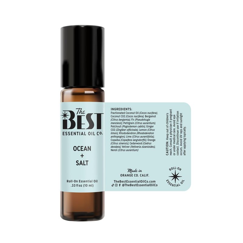 - EASY-PEASY USAGE GUIDE: Using our Ocean + Salt essential oil roll-on is as easy as riding the tide! Simply roll it onto your pulse points like your wrists or behind your ears for an instant burst of coastal bliss. Need a pick-me-up during the day? Roll it on and let the refreshing scent of Coconut, Lemon, and Lime whisk you away to sandy shores and sunny skies. Whether you're starting your day or winding down, this roll-on is your ticket to oceanic serenity!