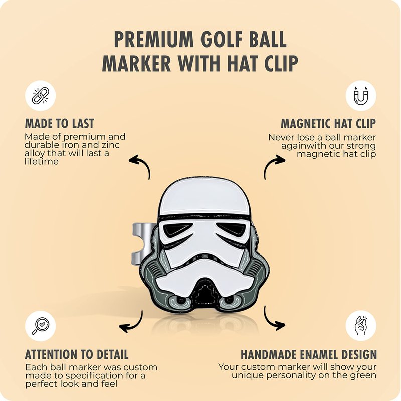 The Birdie Lounge Trooper Golf Ball Marker – Premium Enamel Golf Accessories – 1.25” x 2mm Golf Ball Marker – Custom Designed with Magnetic Hat Clip – for Personalizing Your Golf Game
