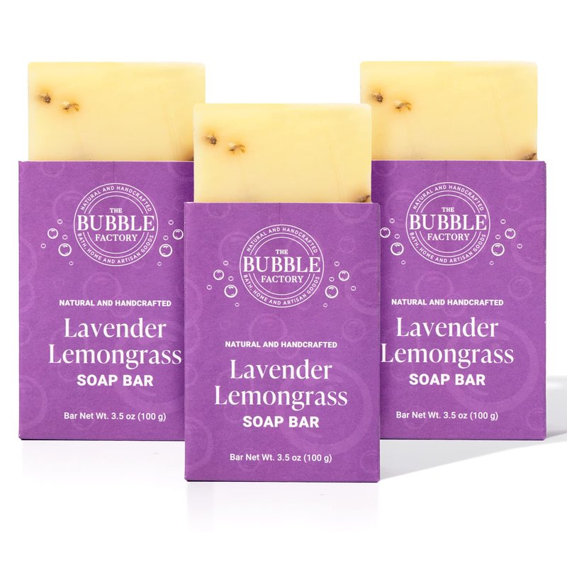The Bubble Factory Lavender Lemongrass - Handmade in the USA, Palm Oil Free, All Natural Bar Soap, 3 Bars