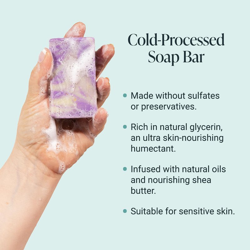 - TRADITIONAL COLD PROCESS METHOD: All of our bars are made by hand using the cold process method, and loaded with natural ingredients so that you can enjoy clean, soft, and healthy skin.
