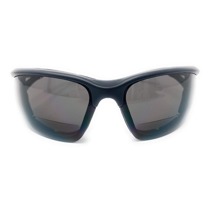 THE CHOPPER safety bifocal reading sunglasses feature a sporty, athletic, modern and stylish full rim frame with foam padded protection. The sweatproof foam cushion will protect your eyes from wind, dust, and debris while you are riding your motorcycle, skiing, working in harsh conditions or mowing your lawn. The foam cushion will keep your specs tight around your face keeping them from flying off or moving during high speeds. The Chopper features 180 wrap protection which blocks UV rays, wind, and debris from all angles keeping your eyes comfortable and safe. These bi focal glasses have a plastic rim with a wrap around shape. The frame is made of lightweight, high quality plastic, making these bifocal reading sunglasses your favorite eyewear accessory. The tinted lenses feature UV400 protection. Designer style safety bifocal sunreaders tinted eyeglasses at an inexpensive price.
