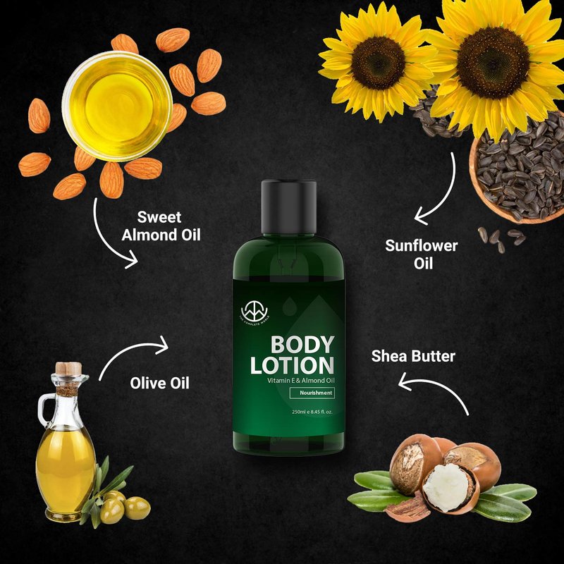 Using The Complete World Vitamin E and Almond Oil Body Lotion is the first step in caring for your skin and making a difference to its overall health, vigor and vitality. Formulated with Vitamin E for increased softness, elasticity and nourishment, and Almond Oil for smoothness and glow, regular use of this product is bound to bring a vast difference in the way your skin looks and ultimately feels. Our recommendation, use it at least twice a day (morning and night) to see discernible results in a short time. MOSITURIZE YOUR SKIN'S BLUES AWAY! Vitamin E: Decreases the effect of UV rays, powerful antioxidant. Sweet Almond Oil: Powerhouse of fatty acids that help skin retain moisture. Sunflower Oil: Powerful emollient that adds hydration and smooths skin. Olive Oil: Powerful antioxidant and an anti-aging agent. Shea Butter: Softens skin, prevents aging and heals the skin.
