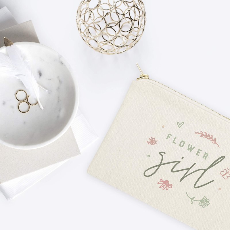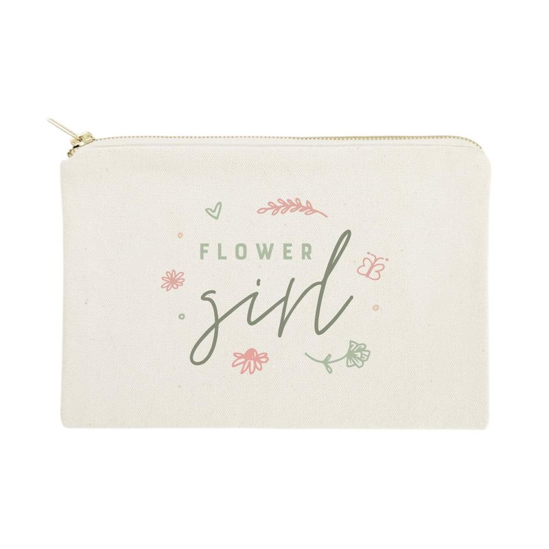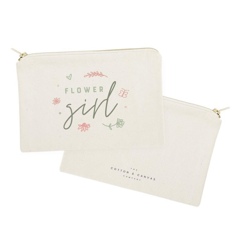 The Cotton & Canvas Co. Floral Flower Girl Wedding Cosmetic Bag, Bridal Party Gift and Travel Make Up Pouch