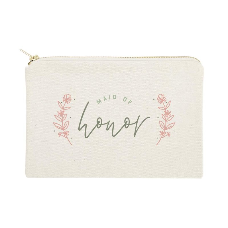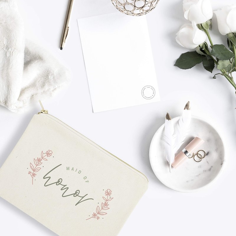 The Cotton & Canvas Co. Floral Maid of Honor Wedding Cosmetic Bag, Bridal Party Gift and Travel Make Up Pouch