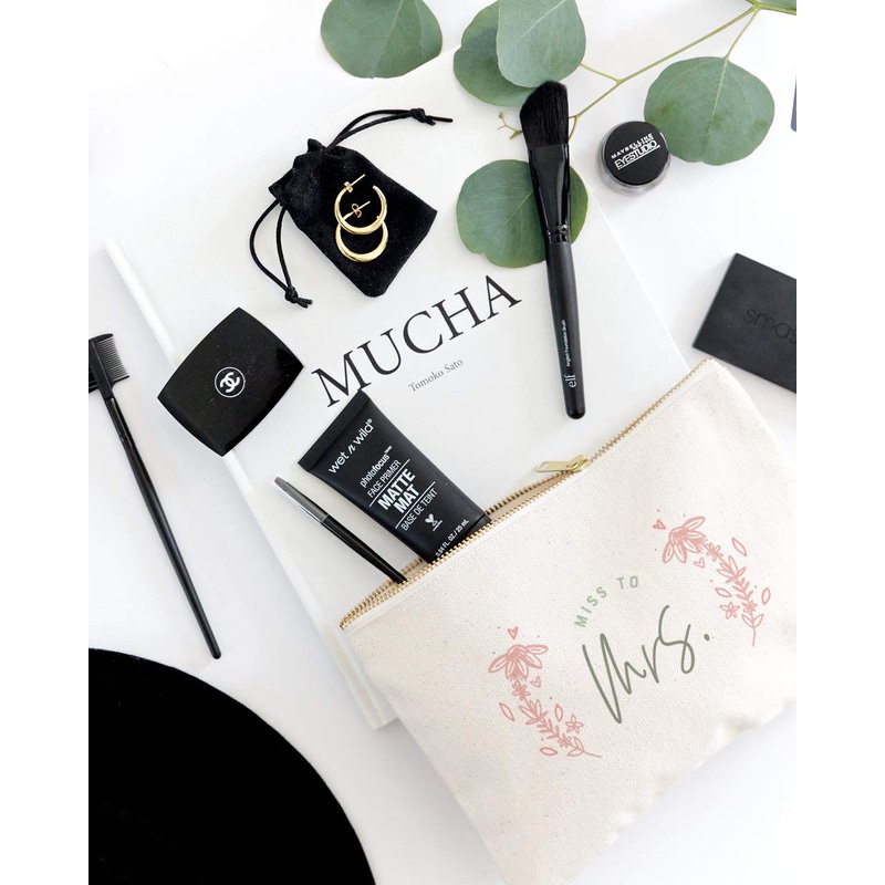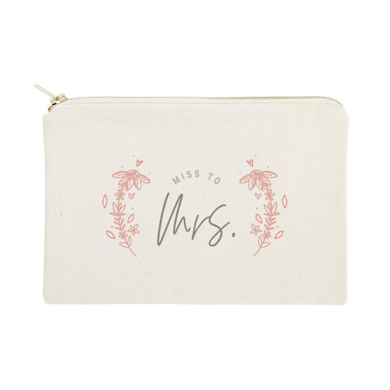 The Cotton & Canvas Co. Floral Miss to Mrs. Wedding Cosmetic Bag, Bridal Party Gift and Travel Make Up Pouch