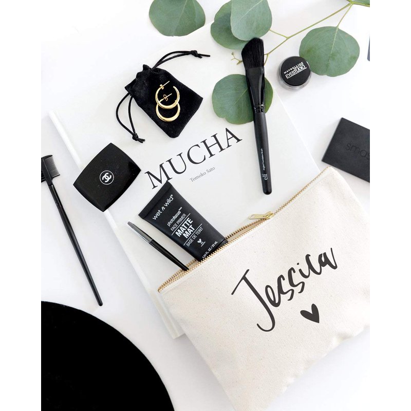 The Cotton & Canvas Co. Personalized Name Heart Cosmetic Bag and Travel Makeup Pouch