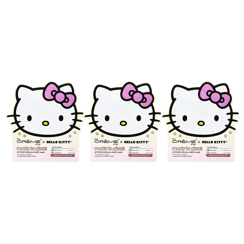 The Crème Shop x Hello Kitty Ready To Glow Sheet Mask Infused with Hydrating Aloe Vera & Radiance-Boosting Calendula For Dewy Soothed Skin Expertly Crafted for Luminous Complexion Set of 3