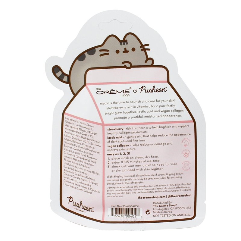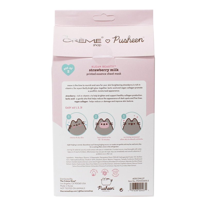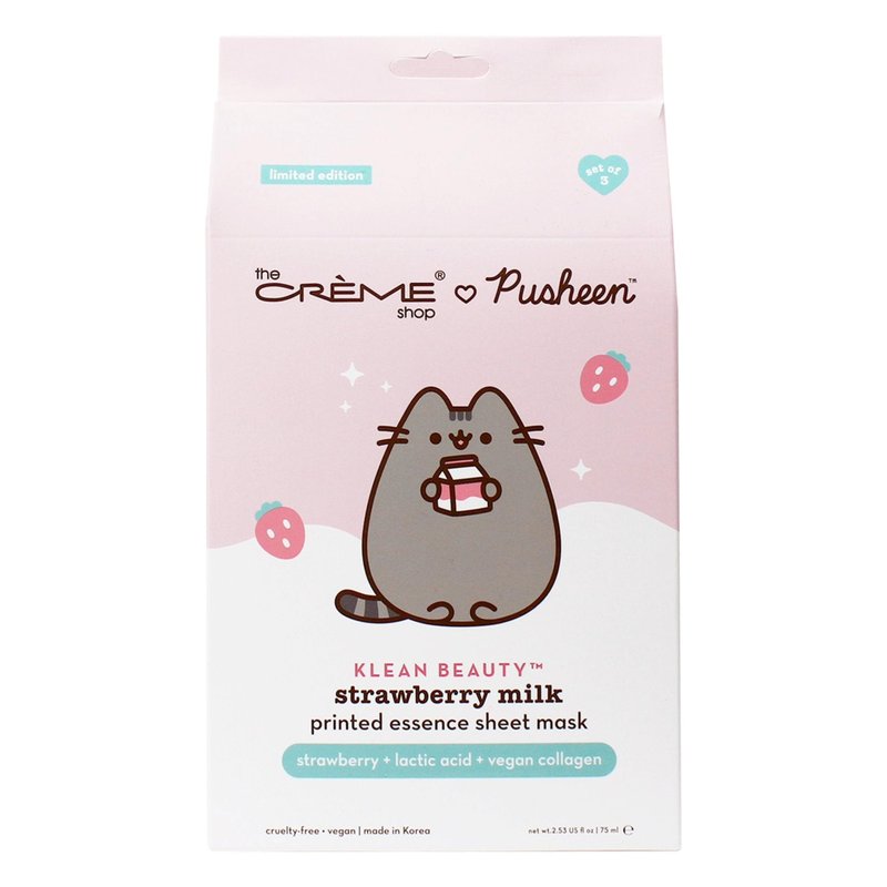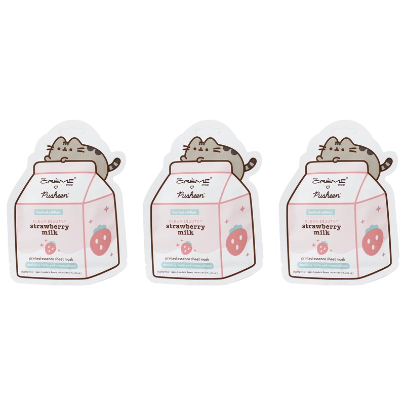 The Crème Shop X PUSHEEN KLEAN BEAUTY Strawberry Milk Printed Essence Sheet Mask | Vitamin C & Vegan Collagen | Brightening & Youthful Skin | Vegan, Cruelty-Free (Set of 3)