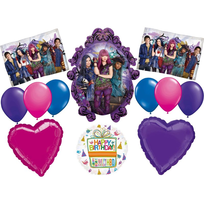 - (1) 31" Descendants Mirror Shape Foil Balloon, (2) 17" The Descendants Foil Balloons, (2) 18" Heart Shape Foil Balloons, (1) 18" Mayflower Products Happy Birthday Present Foil Balloon and (6) 11" Latex Balloons 2 each of Purple, Blue and Fuchsia. Ribbon Not Included. All Anagram Licensed Balloons are Made in USA. Founded in 1977, Anagram International leads the world in innovating and manufacturing foil balloons.