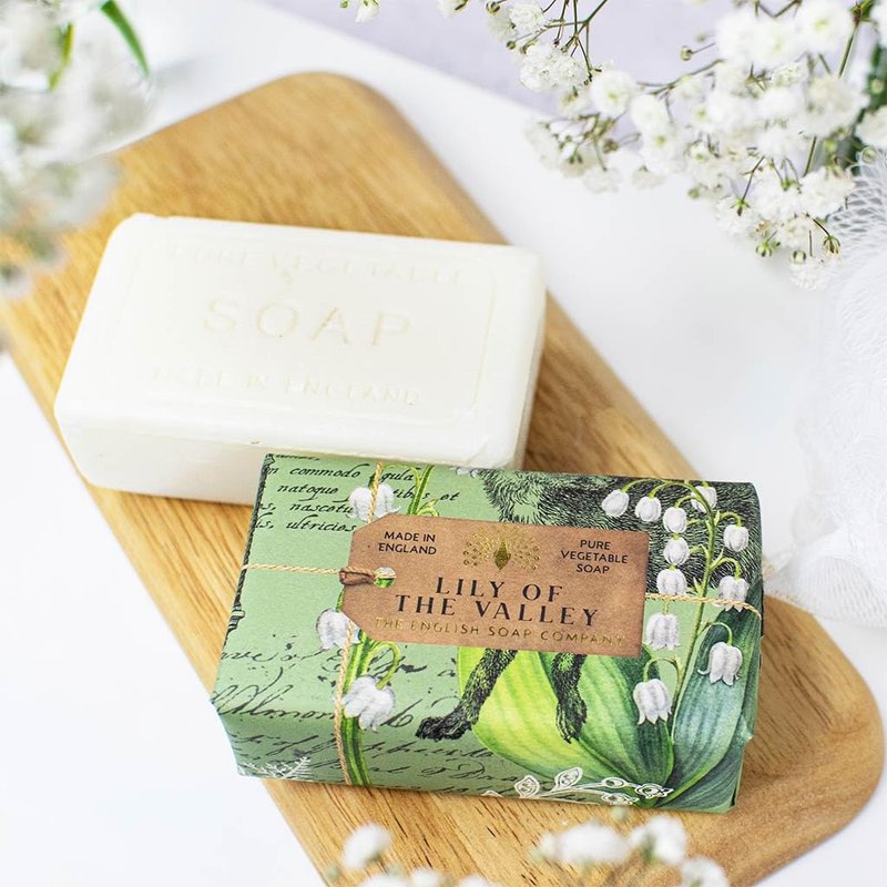 The English Soap Company Anniversary Wrapped Soap Bar, Luxury Lily Shea Butter Soap Bar, Moisturising Soap Bar for Face and Body, Lily of the Valley Scent 190g