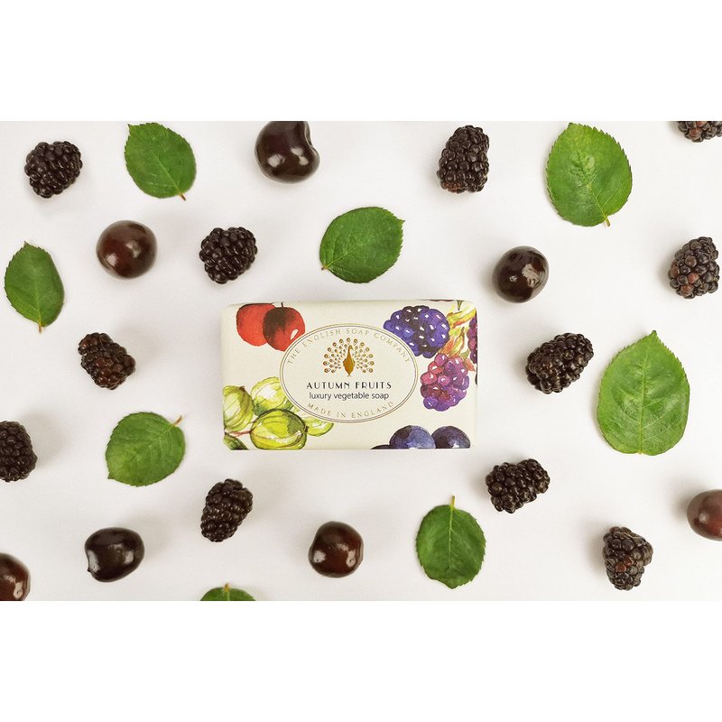 The English Soap Company Vintage Wrapped Soap Bar, Luxury Autumn Fruits Shea Butter Soap Bar, Moisturising Soap Bar for Face and Body, Autumn Fruits Scent 190g