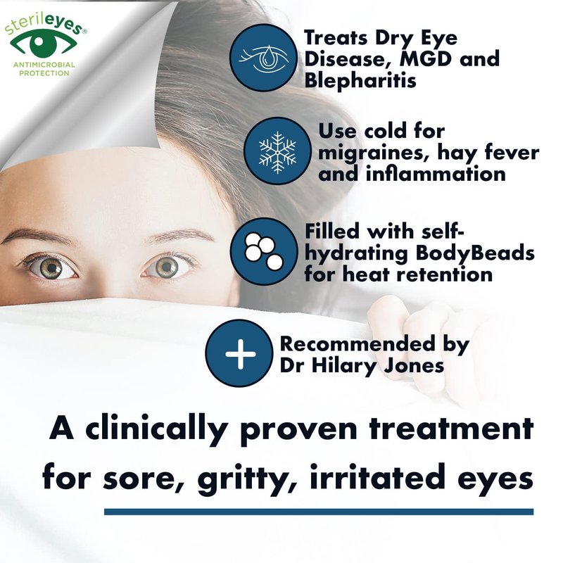 - RESUABLE HOT/COLD EYE COMPRESS: The Eye Doctor Premium is a reusable hot eye compress that provides an effective treatment to help relieve symptoms of Dry Eye Disease, MGD, Blepharitis and Chalazion (Eyelid Cysts). Can also be used cold to help relieve the symptoms of Hayfever, Allergies, Inflammation, Sinus Headaches, Migraines and Tired/Sore/Itchy/Puffy Eyes.
