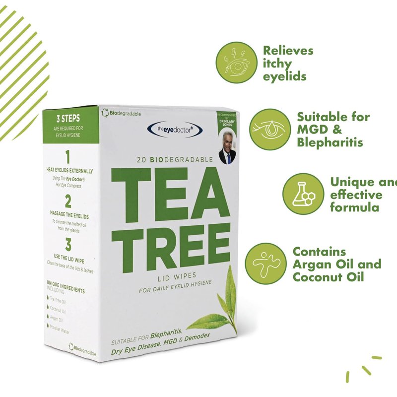 - PREMIUM TREATMENT & RELIEF PACK: Contains The Eye Doctor Premium resuable hot/cold eye compress and 20x single use The Eye Doctor Tea Tree Eyelid Wipes providing effective treatment and relief from symptoms of a range of eye conditions and complications, including Dry Eye Disease, MGD and Blepharitis.