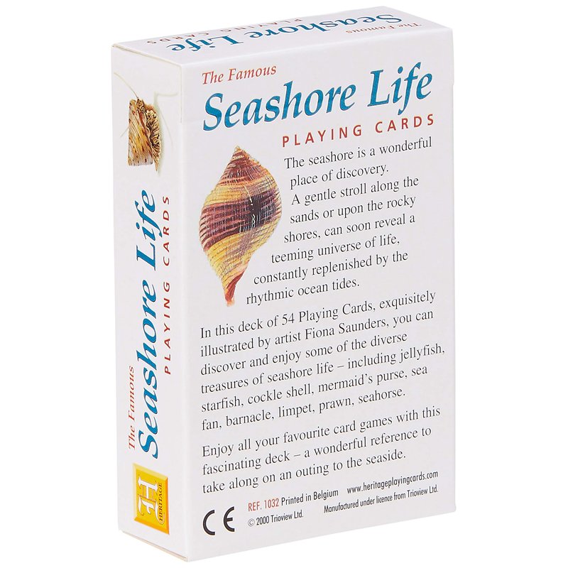 In this deck of 54 Playing Cards, exquisitely illustrated by artist Fiona Saunders you can discover and enjoy some of the diverse treasures of seashore life- jellyfish, starfish,prawn, seahorse.