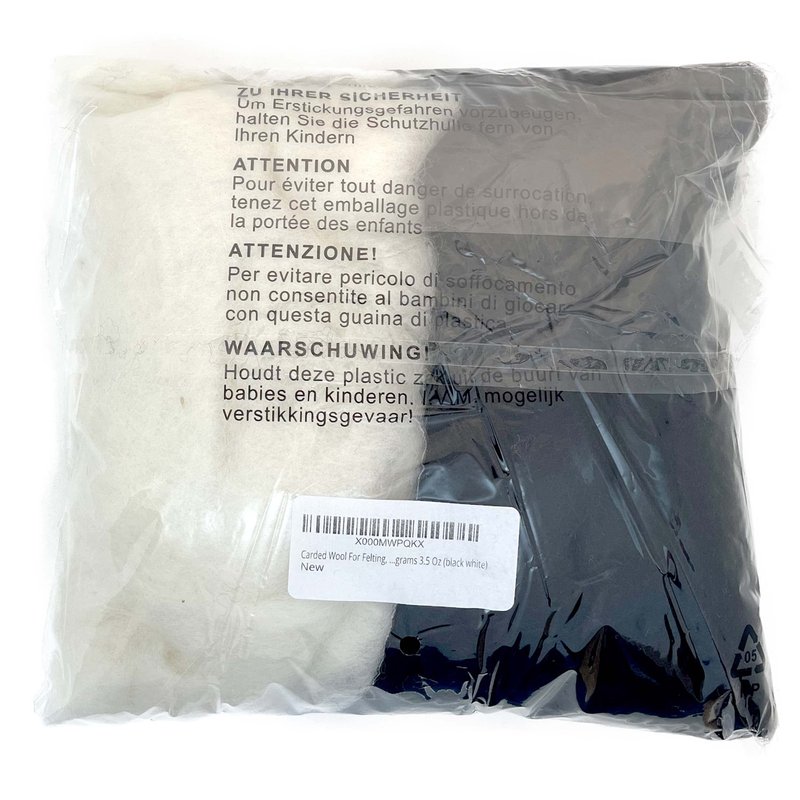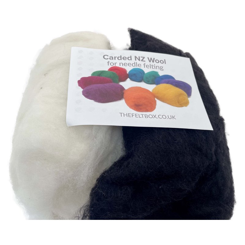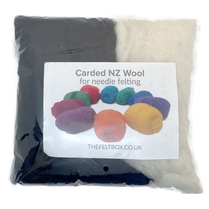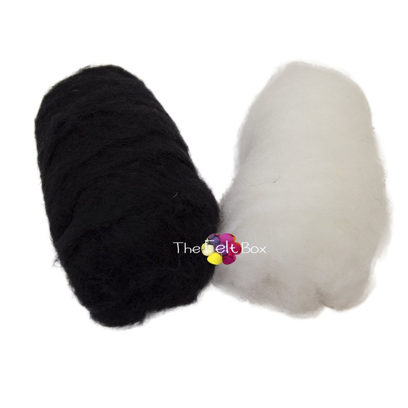 The Felt Box Needle Felting Wool Carded Batts Shade Pack 100 Grams 3.5 Oz (Black/White)