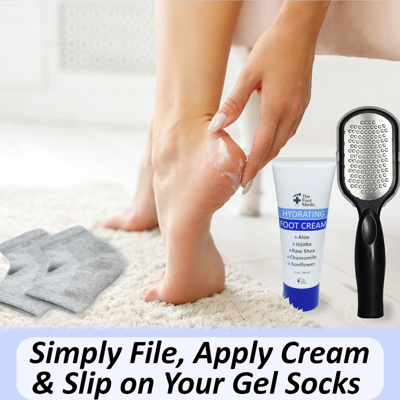 - GEL LINED INSIDE: Made with medical grade silicone providing full heel coverage to lock in moisture and begin deep repair. The Foot Medic foot cream in combination with your gel socks and foot file will repair your cracked heel in no time. Washable & durable for repeated daily usage.