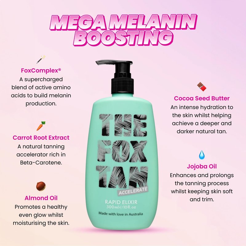 - HELPS DELIVER DARKER TANS: Our Elixir contains the maximum dosage of our active & exclusive ingredient FoxComplex, which dramatically boosts melanin production, the stuff in your skin that helps you tan. More of this means a deeper, darker tan.