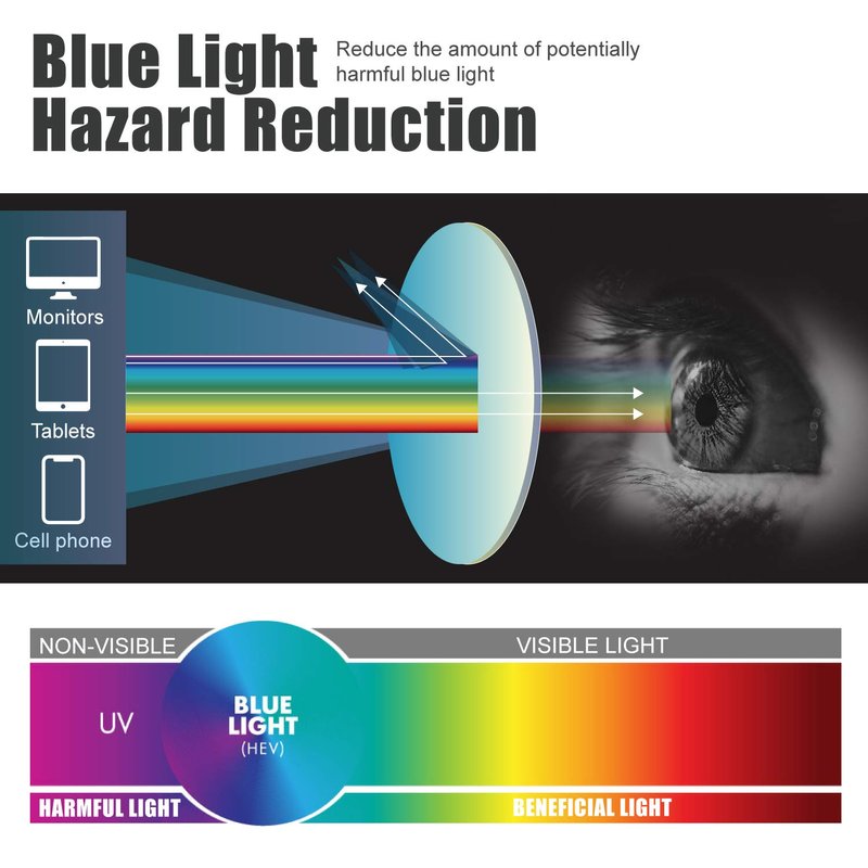 At the same time, Blue light from our computers, phones, and tablets causes our eyes to not only work harder but puts them at risk of aging faster.