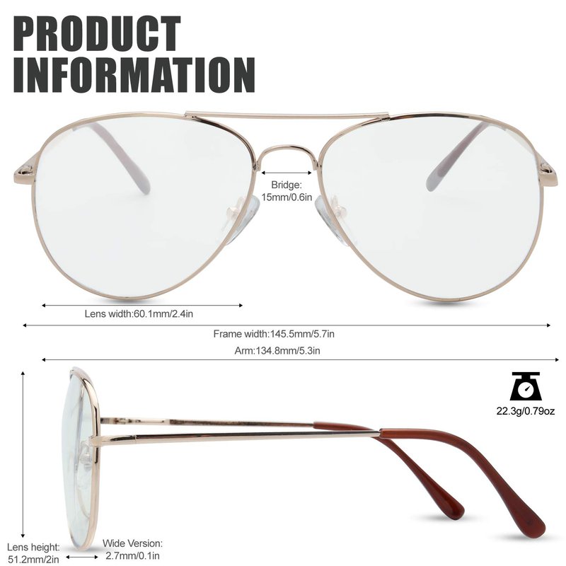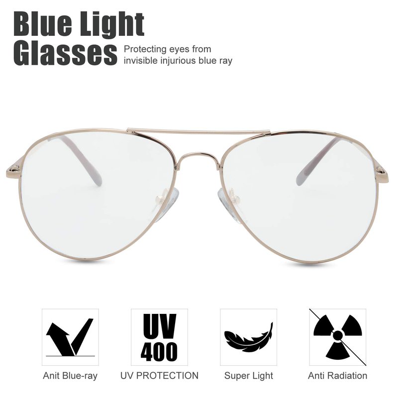 The Fresh Blue Light Blocking Glasses Aviator Frame Anti Blue Ray Computer Game Glasses for Teens Men Women (BAV301 Gold)