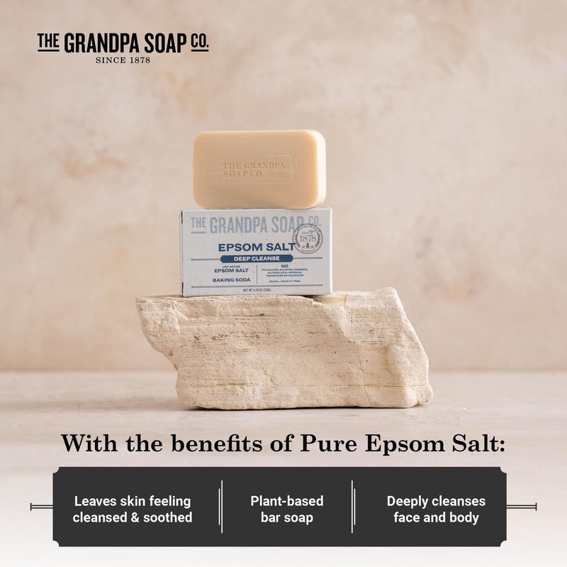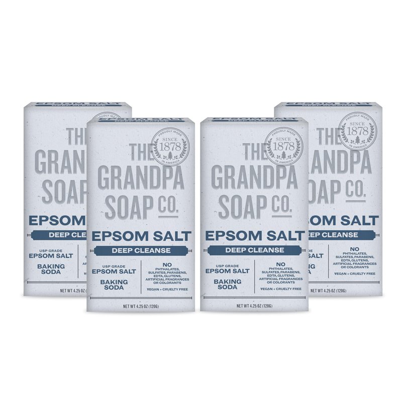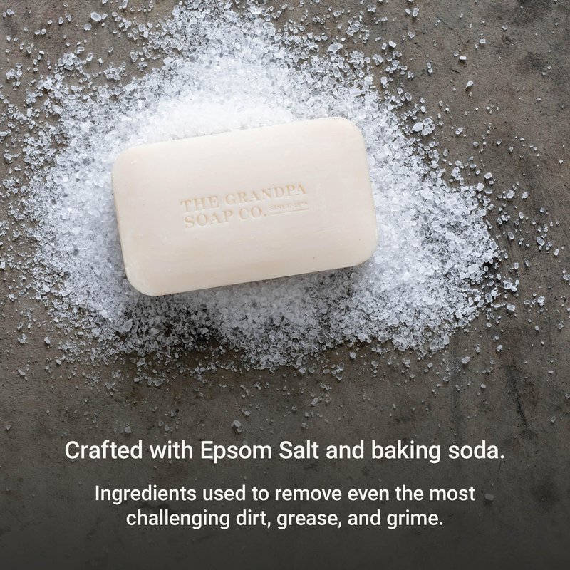 The Grandpa Soap Company Epsom Salt Bar Soap - Deep Cleansing Soap, Made with Epsom Salt and Baking Soda, Removes Dirt Grease and Grime, Vegan, for Face and Body, 4.25 Oz, 4 Pack