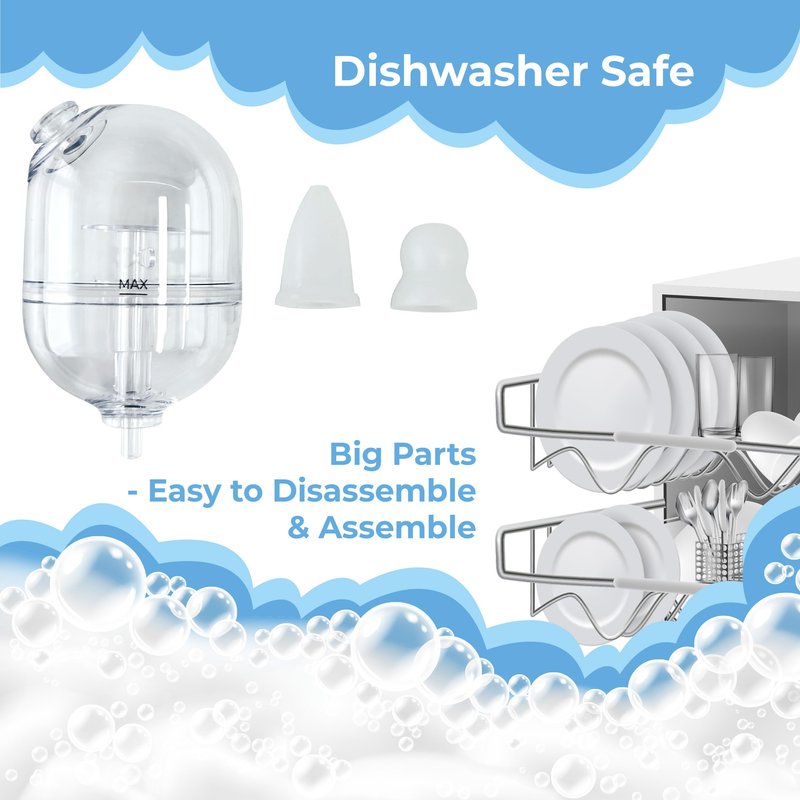 Effortless Cleaning: The nasal tips, storage bulb, and tube are all dishwasher safe, ensuring a hassle-free and thorough cleaning process.