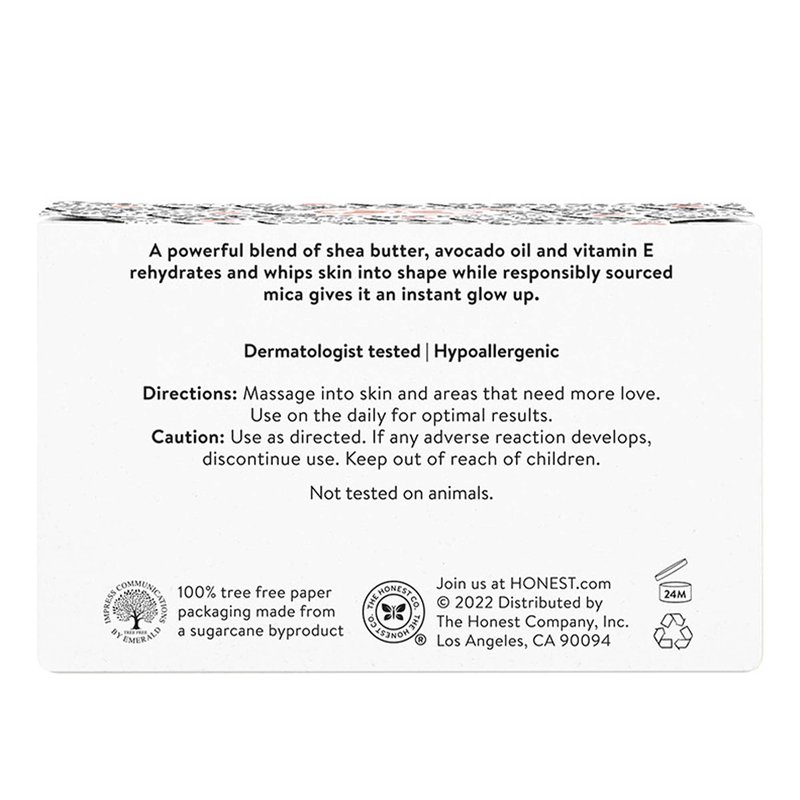 - Made with shea butter, avocado oil + Vitamin E, and responsibly sourced mica that gives skin an instant glow-up