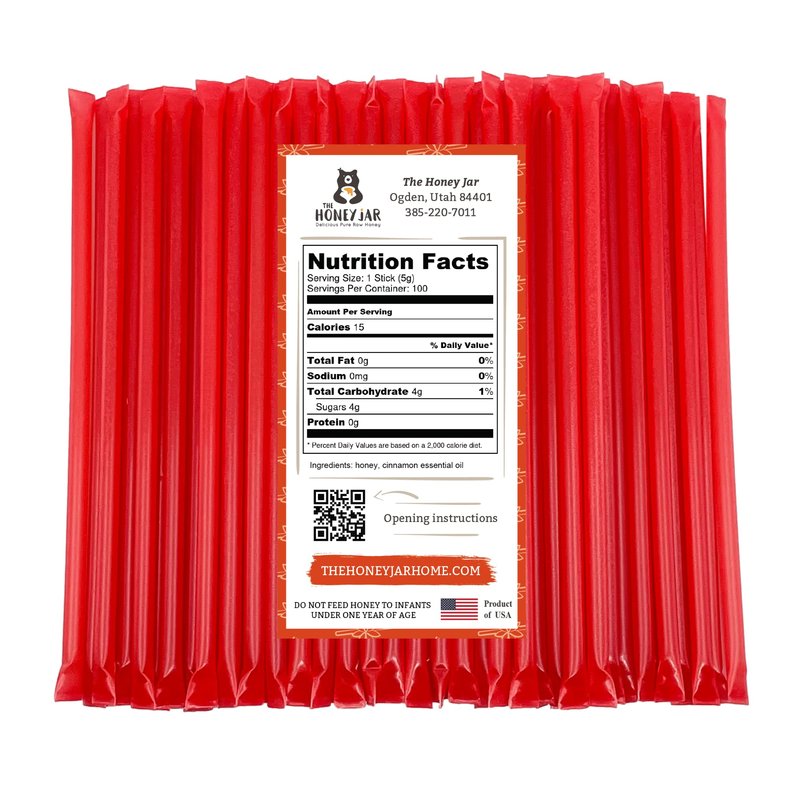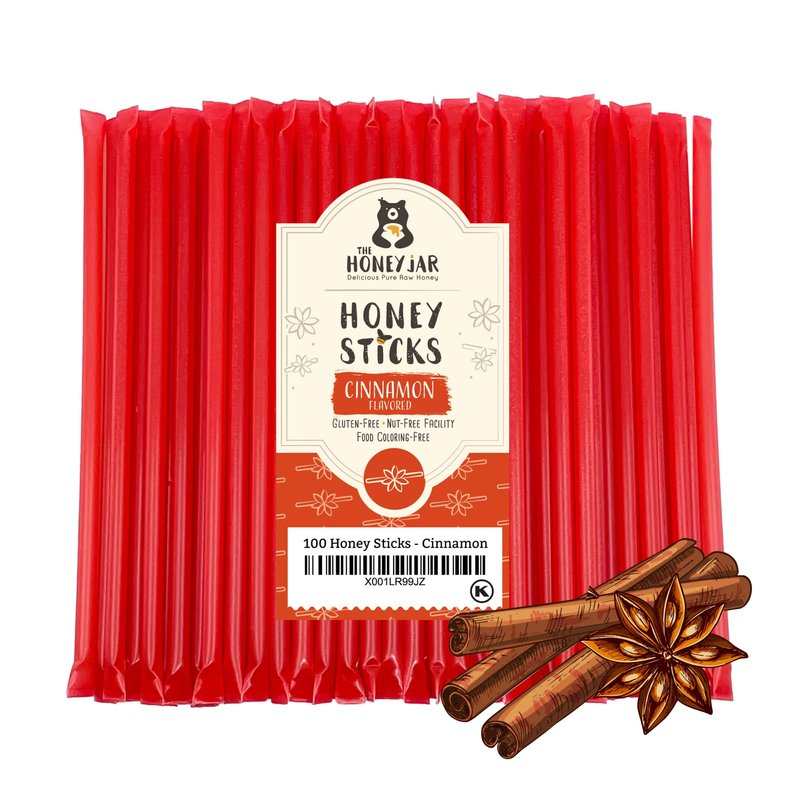 The Honey Jar Cinnamon Flavored Raw Honey Sticks - Pure Honey Straws For Tea, Coffee, or a Healthy Treat - One Teaspoon of Flavored Honey Per Stick - Made In The USA with Real Honey - (100 Count)