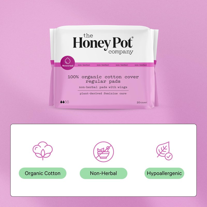 - Say hello to the future of feminine care with Honey Pot: These regular absorbent OCS certified organic cotton cover sanitary pads are designed with our absorbent technology; They are clinically tested, hypoallergenic and dermatologist approved