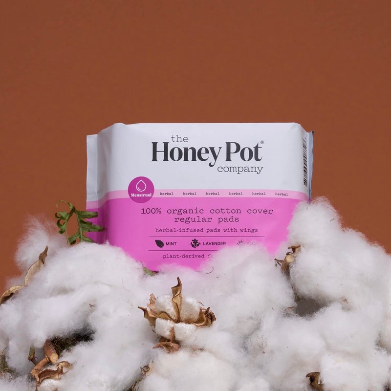 The notorious Honey Pot cooling sensation that makes peace with your period is now paired with an OCS certified organic cotton cover for worry-free moments when needed most. The Honey Pot Herbal-Infused Regular Pads combine the power of herbs with our absorbent technology to create a pad that is breathable and keeps you fresh all day and all night. The Honey Pot's clinically tested pads are made with OCS certified organic cotton cover and are gynecologist-approved. Our regular pads are to be used on normal days for effective protection, providing a cool and comfortable experience. Our herbal sanitary pads are crafted with an OCS certified organic cotton cover and infused with essential oils, creating a "cooling" effect that helps soothe when you need it most. With lavender, rose, aloe vera and mint, our organic cotton cover menstrual pads are designed to soothe, refresh and protect. When using the herbal regular pads, you will feel a refreshing, cooling sensation that is unlike any other pad you have ever used. Here’s to a new relationship with your menstrual care products! A message from Bea Dixon, Founder of The Honey Pot Company Plant-derived feminine care from my kitchen to your hands – I was suffering with BV for 8 months when an ancestor came to me in a dream and gifted me with a vision to heal myself. With her help I created The Honey Pot to solve for what other brands wouldn't - feminine care powered by herbs that is backed by science, clinically tested and gynecologist-approved. The Honey Pot Company provides humans with the tools and resources that promote health and wellness. Made by humans with vaginas, for humans with vaginas. Because it takes one to know one.