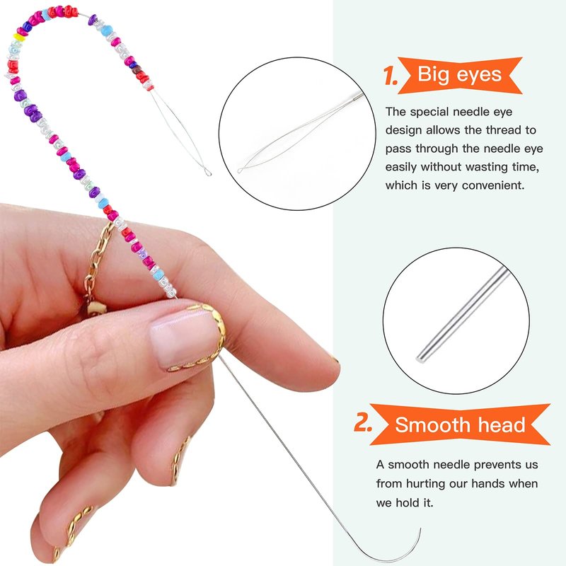 - ┃NEEDLE EYE┃: The enlarged needle eye is very convenient to thread, suitable for all sizes of thread, can easily beaded without pressure!