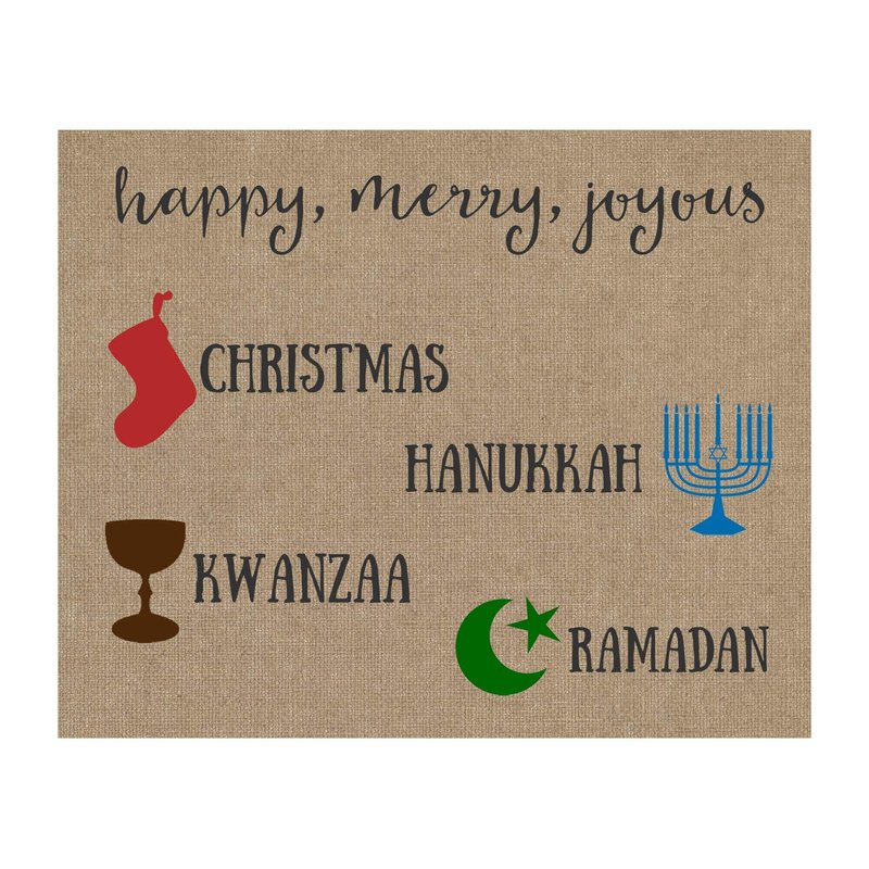 The Invite Lady Merry Everything Christmas Card Inclusive Holiday Greeting Cards Happy Holidays Christmas Kwanzaa Hanukkah Ramadan Joyous Burlap Religious Religion Pack of Cards (12 count)
