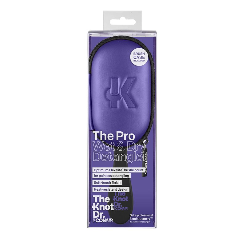 The Knot Doctor for Conair Premium Pro Detangling Hair Brush for Wet or Dry Hair with Purple Storage Case, 1 Count