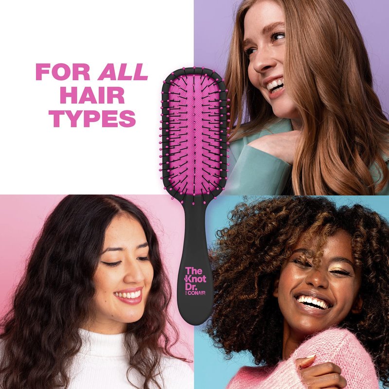 The Knot Dr. hair brush by Conair - Detangling hair brush - Travel Brush - wet brush - Removes Knots and Tangles in wet or dry hair- Pink
