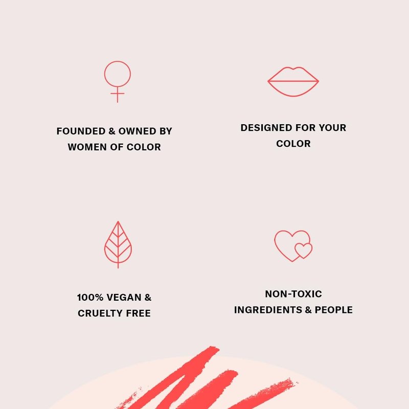 Applies like a gloss, dries as a soft matte, and lasts all day with an 8-12 hour wear, fierce color, and kiss proof finish that is flattering for women, men, and non-binary beauties of any age or complexion