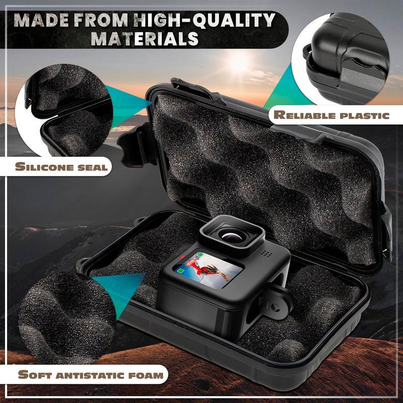 Multipurpose Small Waterproof Storage Box: The watertight storage case which can keep your small goods dry, such as ID, credit cards, money, keys and other things you need during your action rest SIZE AND MORE: Waterproof storage case for storage small stuff and wallets watertight box outdoor products have next size: 4.92 x 2.95 x 1.53 IN and tether loops make it easy to carry this small waterproof camping box with your valuables. DURABLE, SHOCKPROOF & WATERPROOF The waterproof box for boat is with black silicone sealing ring, waterproof, moisture resistant, dust proof. This waterproof dry box cannot be soak in water for too long time, may leak when water pressure is too strong. SECURE STORAGE This weather resistant case is great for use outdoor as phone case storage box , EDC gearup camera box, flashlight, batteries container box, pocket knife and other small electronics devices on your trips like fishing, cycling and as kayak dry box . COMPACT TRAVEL DESIGN This plastic case with foam features a premium hard shell exterior constructed from durable plastics that will provide impact-resistance to your valuable contents. Dimensions of drycase waterproof is 4.92 x 2.95 x 1.53 inches Waterproof (IP67 rated), dustproof, shockproof | Automatic purge valve equalizes pressure on the inside of the watertight storage box when travelling NOTE: The waterproof cases can keep afloat on the water but the Waterproof function is not for diving & may leak if the water pressure is too strong)