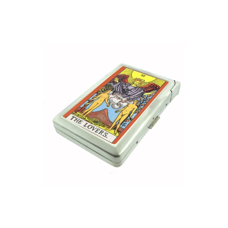 The Lovers Tarot Card Metal Cigarette Case with Built In Lighter D-111