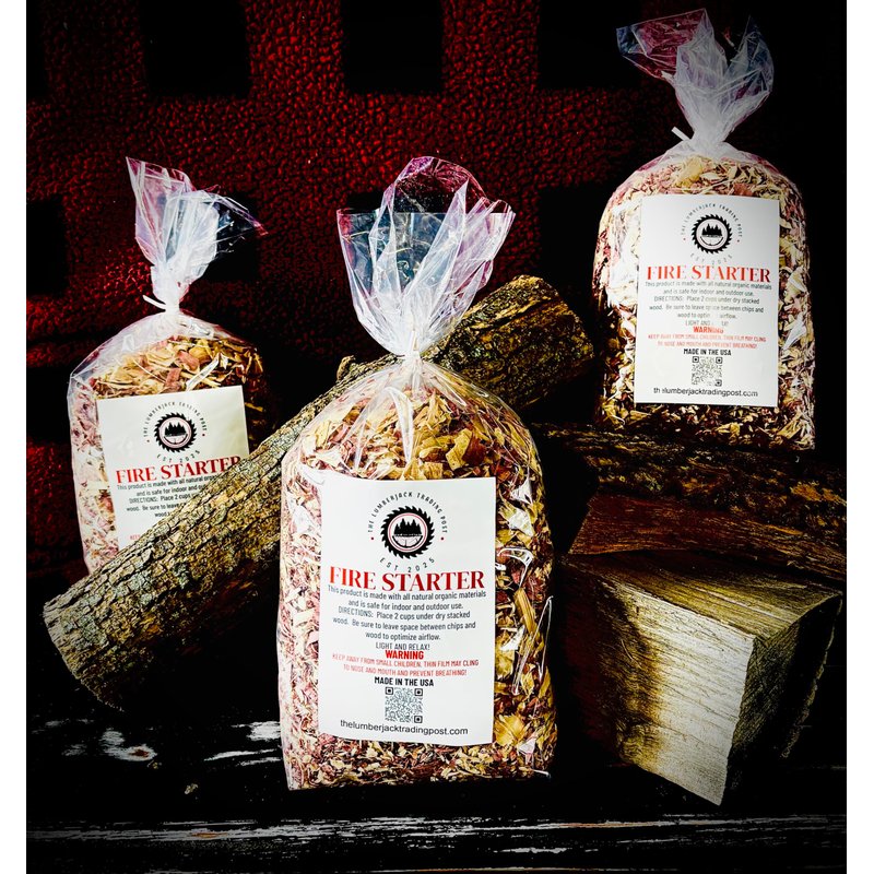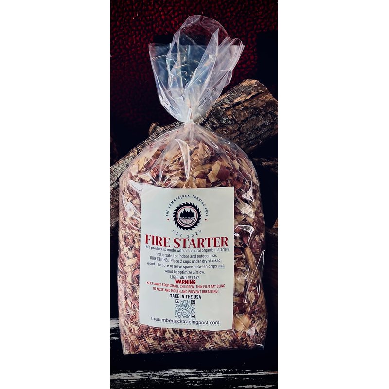 Take your firestarting skills to a new level with The Lumberjack Trading Post Fire Starter. This product is designed to get the fire going. Made with 100% kiln dried cedar shavings and an organic coating to ensure this product is non toxic whether using it indoors or outdoors. It is great for campfires, bonfires, woodburning stoves, and fireplaces. This fire starter is lightweight and is easily stored.