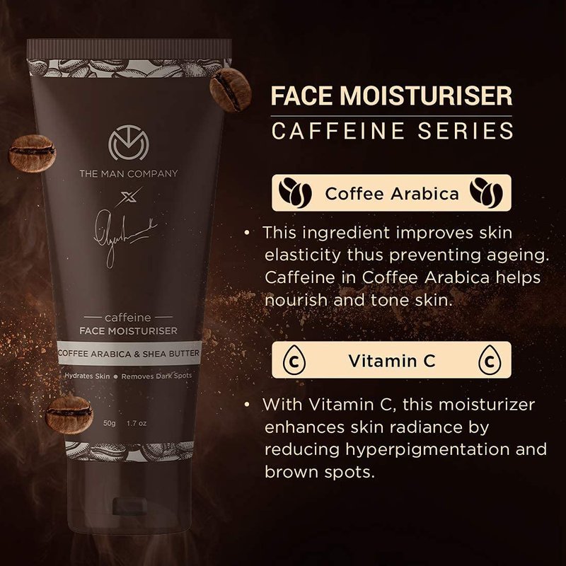 The Man Company Groom with Coffee Detail Your face deserves the expert care that feels luxurious. Curated by Ayushmann Khurrana and arranged by The Man Company, this face care kit is a one stop solution to all your facial woes. Powered by Coffee Arabica, the kit contains a face wash, a face scrub, and a face pack. Caffeine Face Wash (100 ml) Caffeine Face Scrub (100 ml) Caffeine Face Pack (100 gm) Caffeine Face Wash Bid farewell to a dull face with this face wash. Enriched with Caffeine and Green Tea, it not only cleanses your face of deep impurities but energizes it as well. Caffeine Face Scrub This face scrub contains Coffee Arabica, which helps remove dead skin and sun-tan, and Aloe Vera that takes care of your skin after. Caffeine Face Pack The Man Company Caffeine Face Pack enriched with Kaolin Clay will help your face relax and unclog its pores. It helps your face breathe better.