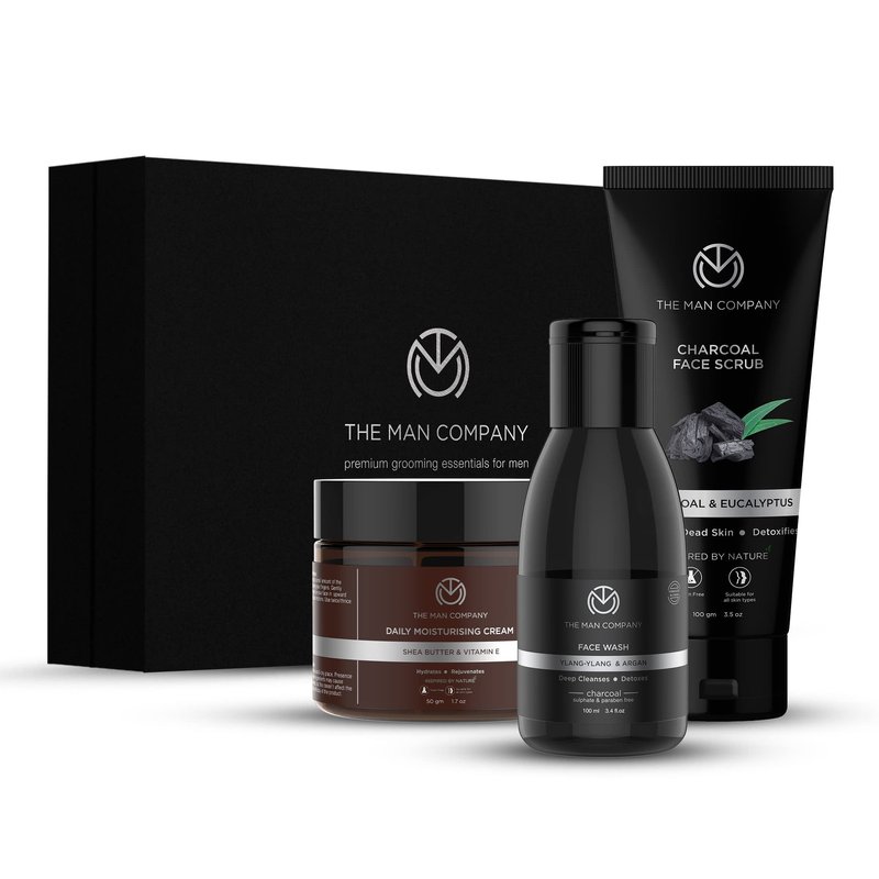 The Man Company Detan Facial Kit - Charcoal Face Wash, Charcoal Scrub, Daily Moisturising Face Cream | Best Detan Care - Pack of 3