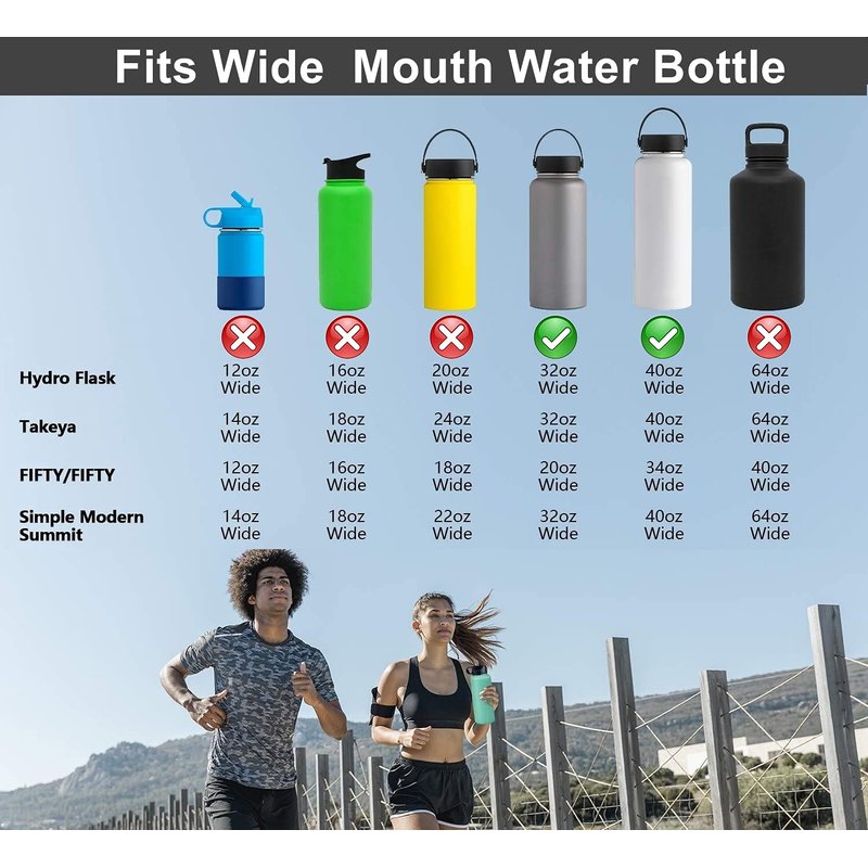 - Not fit any Standard Mouth (12oz, 18oz, 21oz, 24oz) or Narrow mouth water bottles. Not fit tumbler, rambler and any bottle with different mouth or different bottom.