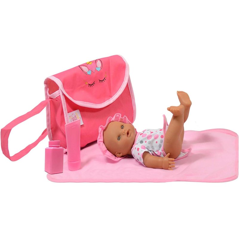 The New York Doll Collection Unicorn Doll Diaper Travel Bag with Doll Care Accessories, Including Baby Lotion, Powder, and Changing Mat