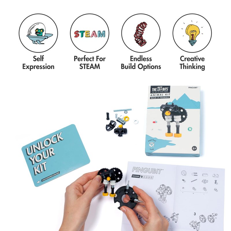 The Off Bits Stem Building Toys, Educational Build Your Own Robot Toy for Kids Age 6 7 8 9+ Year Old Boys and Girls, Animal Stem Toys Engineering Kit, Construction Toys Steam Gift - Penguin