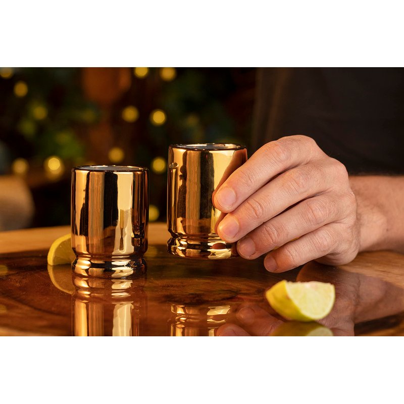 The Original 50 Caliber Brass Ceramic Shot Glasses - Set of 2 - American Owned & Operated - LIFETIME Guarentee