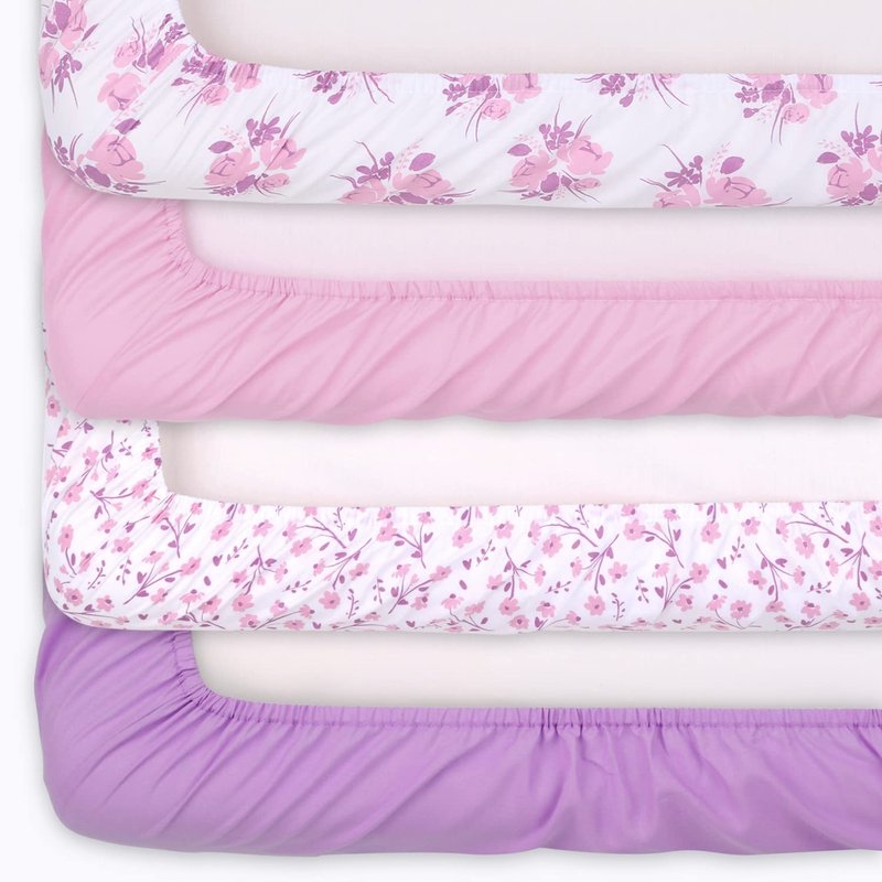 The Peanutshell Floral Crib Sheet Set for Baby Girls - 4 Pack - Pink & Purple