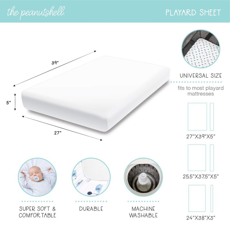 - Perfect Fit – This set includes three fitted multipurpose sheets designed to fit a playard, mini crib, or pack and play with 3 to 5 inch deep mattresses and between 24x38 and 27x39 dimensions. All around elastic ensures a safe and snug fit.
