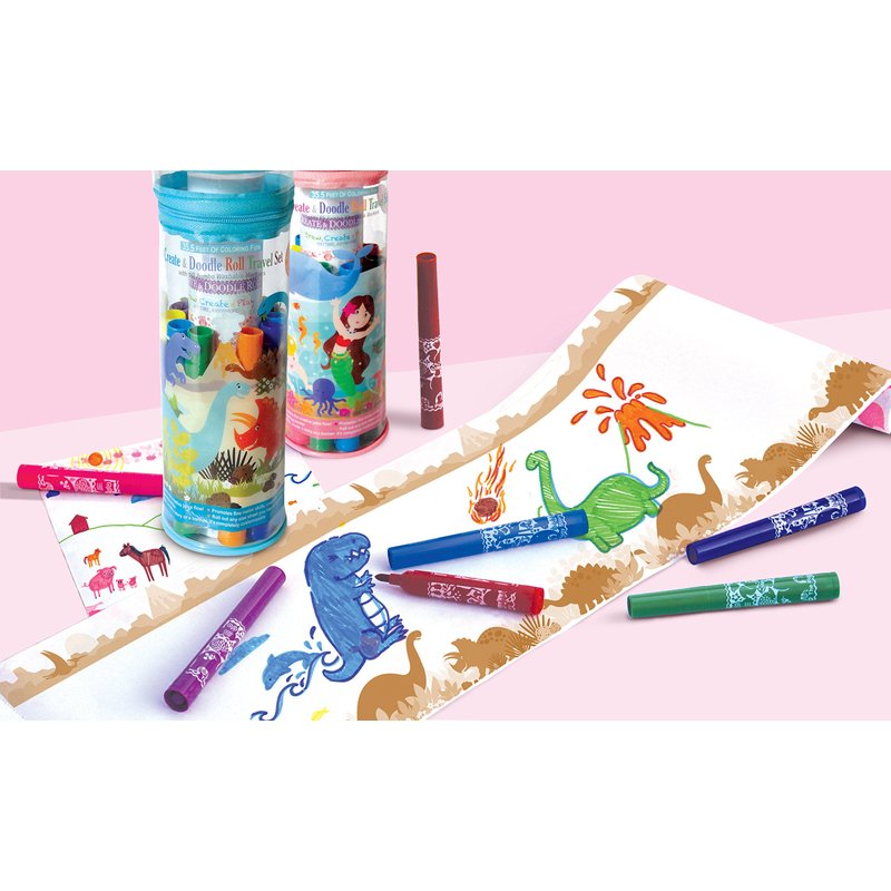 The Piggy Story 'Dinosaur World' Create & Doodle Art Paper Roll Travel Set with Markers