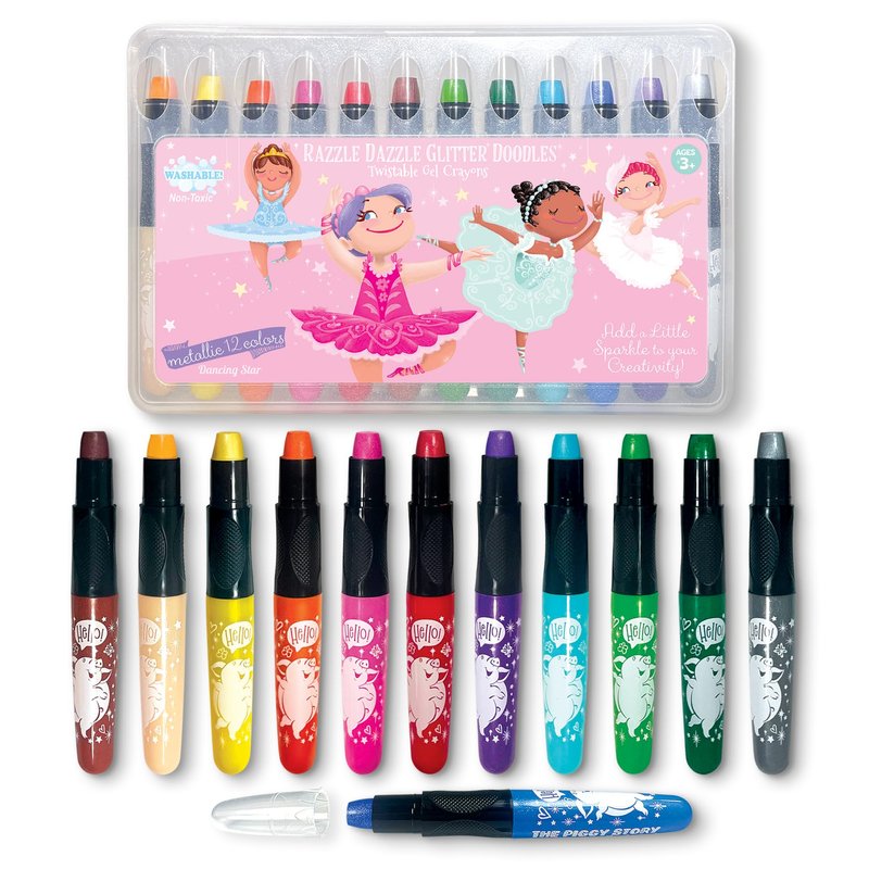 The Piggy Story Glitter Gel Crayons, Set of 12 Crayons in Dancing Star Design